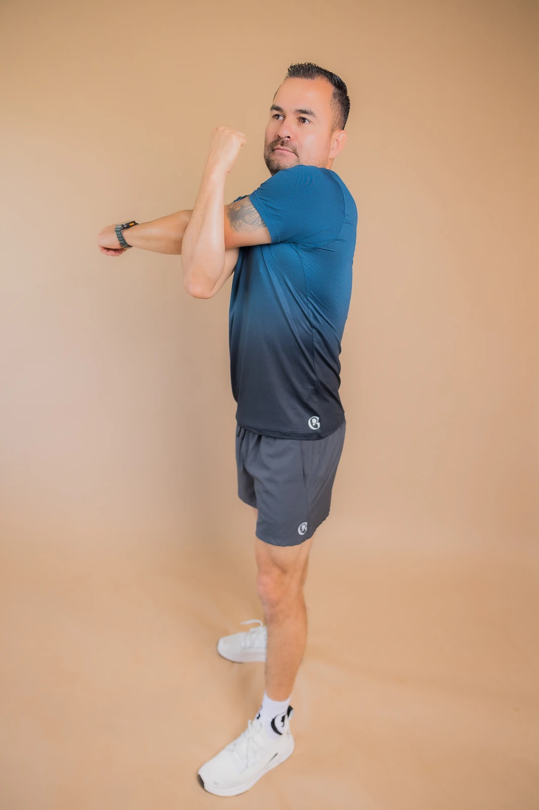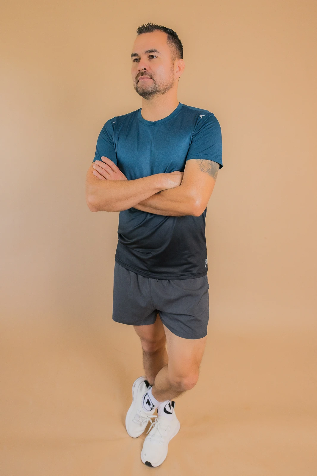 Camiseta elástica de cuatro vías para hombre, de secado rápido, elaborado con un material poliéster/spandex, ideal para correr, entrenar y actividades cotidianas. Esta camiseta es ideal para aquellos hombres que le gusta estar siempre a la moda y cómodos.