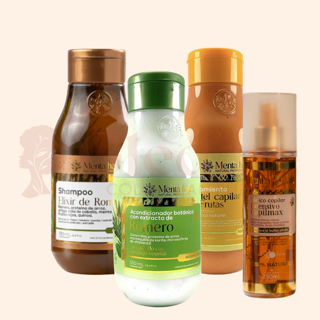 Shampoo Elixir de Romero Menta Hair + Acondicionador Botánico con Extracto de Romero + Tratamiento Capilar Coctel de Frutas + Tónico Capilar Intensivo Capilmax