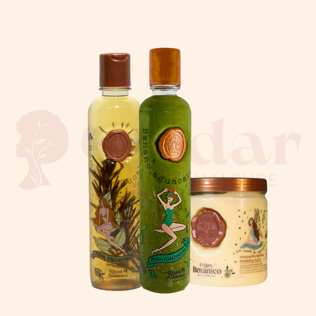 Kit Crecimiento Ritual de Ritual Botánico: diseñado para fortalecer la raíz, estimular el crecimiento capilar y devolverle vitalidad a tu melena con ingredientes 100% naturales.