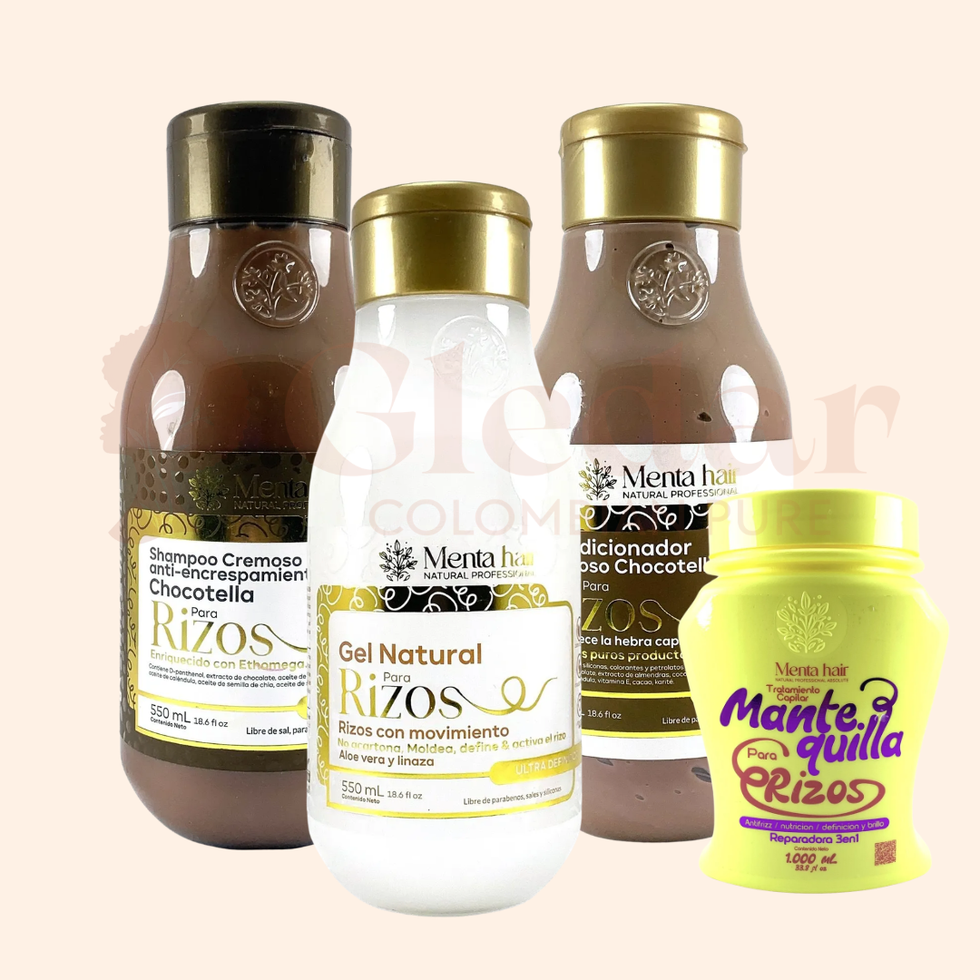 Shampoo Cremoso + Acondicionador cremoso + Mantequilla para rizos + Gelatina Natural de Rizos