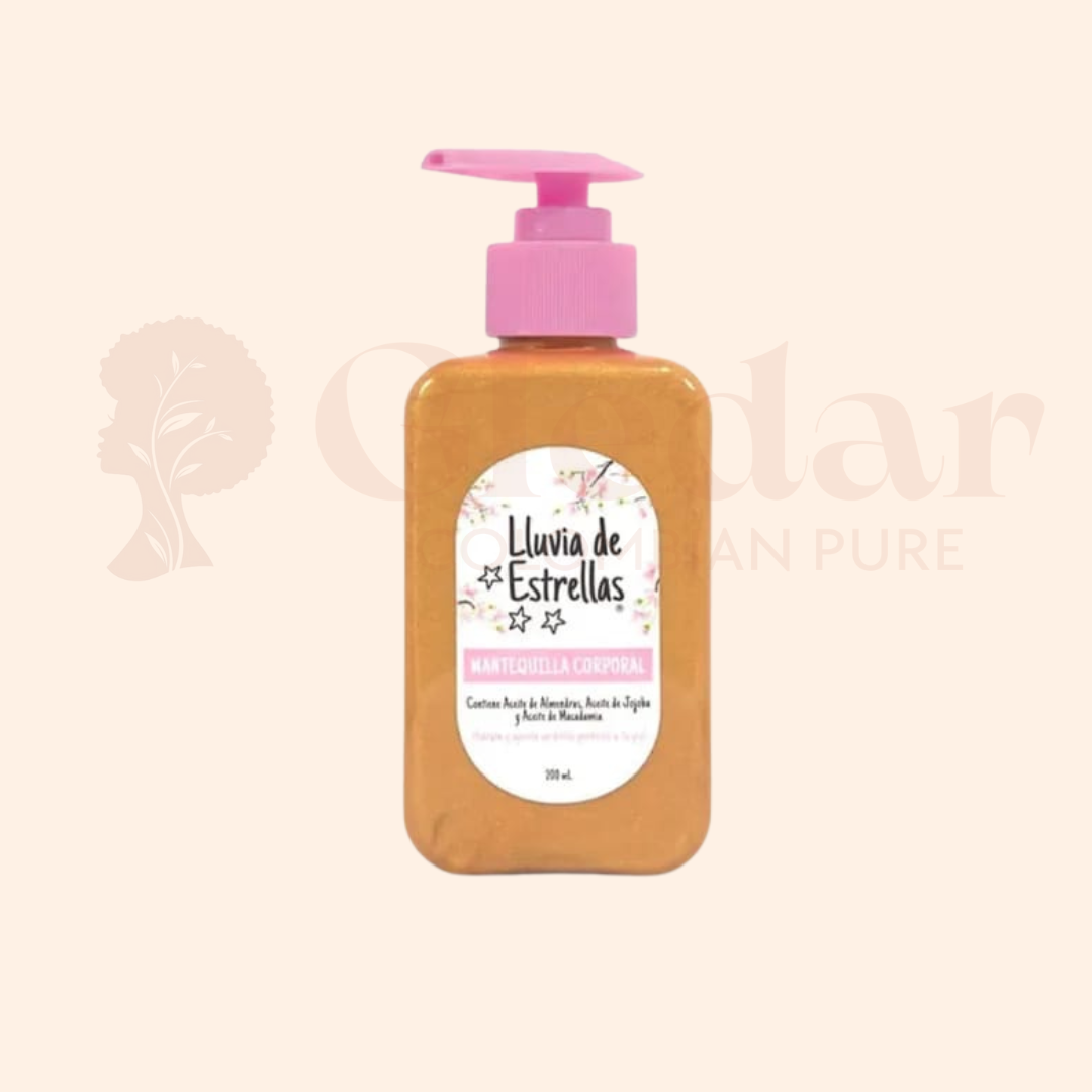 Con nuestra mantequilla corporal con color lograrás un bronceado de ensueño: una piel canela con destellos dorados, mientras la nutres e hidratas gracias a los extractos naturales de sus ingredientes. Este producto da un bronceado para el día a día. No es un autobronceador ni deja un efecto duradero por días o semanas: el color y el brillo se eliminan fácilmente al lavar la piel con agua y jabón. Es rica en aceites naturales: contiene aceite de almendras, que aporta suavidad y nutrición; aceite de jojoba, que ayuda a retener la humedad, protege la piel de factores externos y mejora su apariencia; y aceite de macadamia, que estimula la producción de colágeno y contribuye a la regeneración de tu piel.