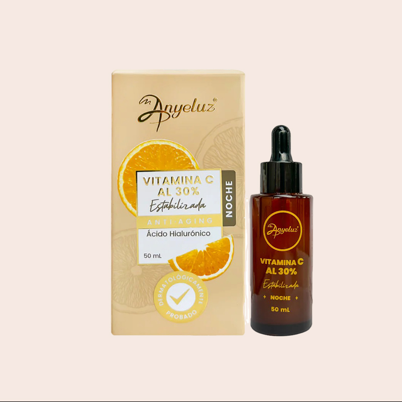 ANYELUZ Vitamin C Serum is a daily serum formulated with 30% Vitamin C (3-0 Ethyl Ascorbid Acid), Hyaluronic Acid and Ferulic Acid.